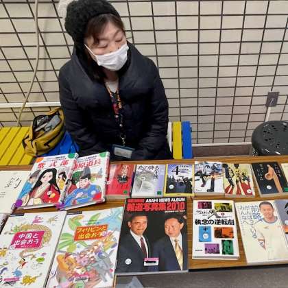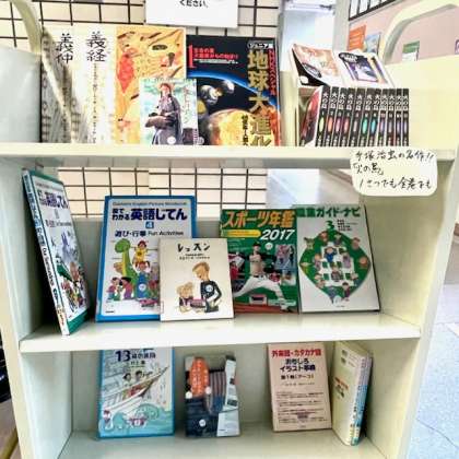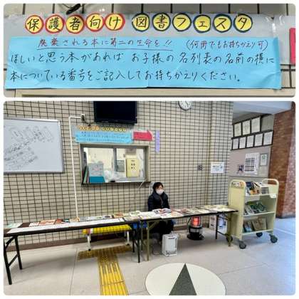 この期間、玄関ホールと図書館前では「保護者向け図書フェスタ」が開催されています。図書館の廃棄本ですが、どうぞご家庭にお持ち帰りいただき、読んでください。