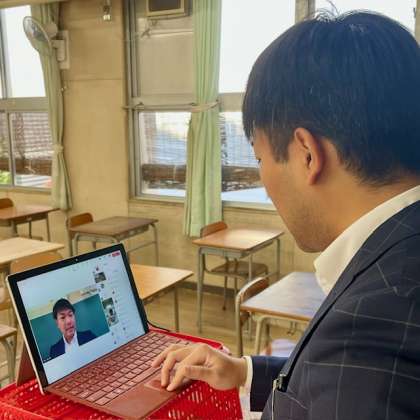 担任の荒尾先生が、午前8時30分からMicrosoft teamsを活用して朝学活を行いました。
