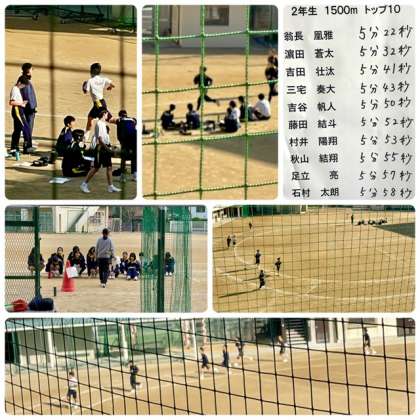 グラウンドでは、3年男女が持久走をしています。大淀中学校の生徒は勉強にも運動にも、とてもよく頑張っています。
