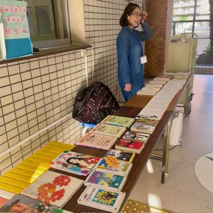 昨日、フェスタに出品していた、手塚治虫さんの「火の鳥」全12巻が貰っていただけました。「お父さんも私も手塚治虫さんの大ファンなんです。」と話してくれました。懇談期間中はまだまだ図書館フェスタを開催していただいています。お気に入りの本を見つけてください。