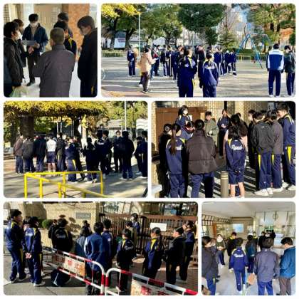 地区奉仕活動後、一度帰宅して学校に登校します。10時25分までに登校してください。
