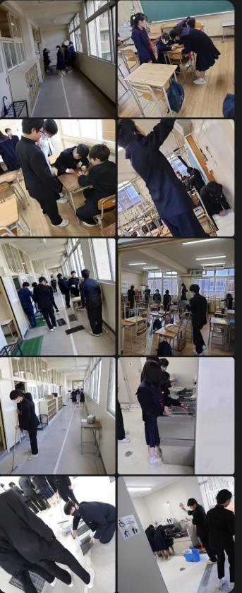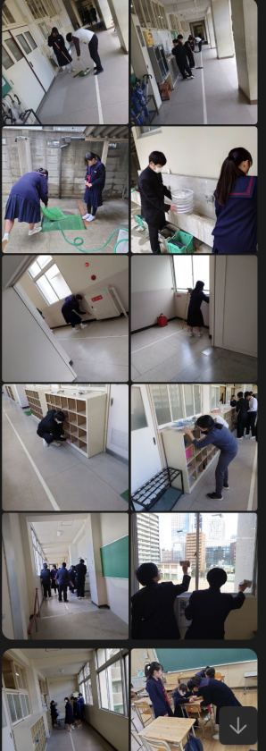 登校後、学活を済ませ、次は、学校の大清掃です。それぞれ、担当の持ち場に班で別れて、学校の美化に貢献しています。