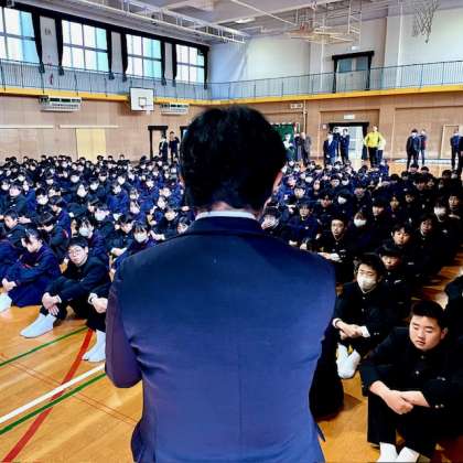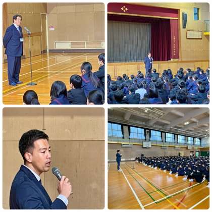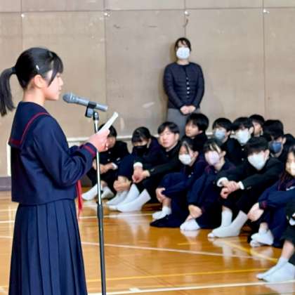 最後に生徒会代表から新学期の取り組みについて連絡がありました。1)ペットボトルキャップ、2)ベルマーク、3)コンタクトレンズの空ケース、4)空き缶のプルタブ、5)大淀小学校いきいき教室への物品を、1月10日(金)から17日(金)登校時に玄関ホールで回収します。ご協力よろしくお願いします。