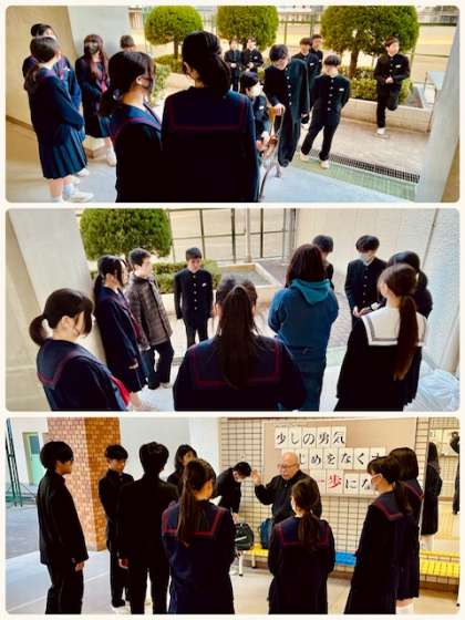 毎週金曜日の朝は、早朝清掃に取り組んでいます。午前8時各学年担当生徒の集合点呼です。各学年とも早朝から集まってくれました。