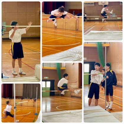 驚きは学年最高記録の更新です。ある生徒は自身の目の高さのバーをベリーロールでひょいと飛び越えていました。授業の最初に聞いた記録よりさらに記録を伸ばしていました。