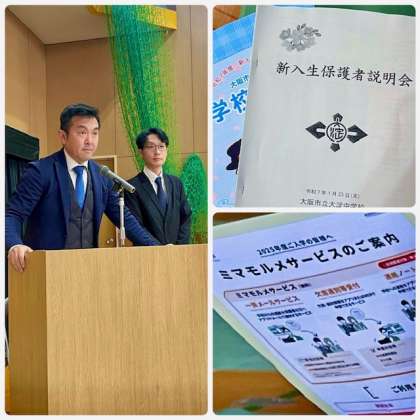 本日、欠席の新入生保護者の皆様には、明日以降通学している小学校を通じて資料を配付いたします。