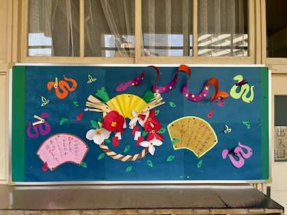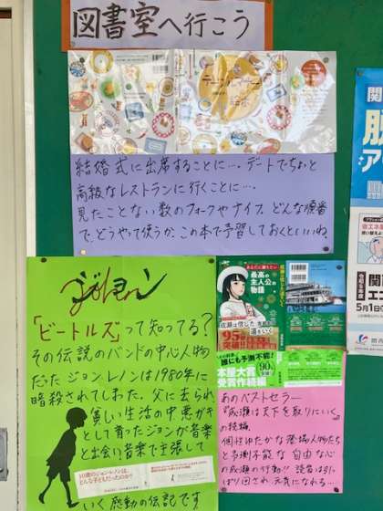 図書館の掲示板はお正月らしくディスプレイして生徒の来館を待っています。職員室前の掲示板にも新刊の照会がありました。