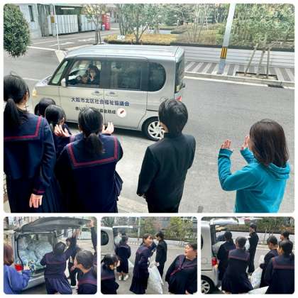 生徒会のみなさんが、全校生徒に呼びかけて集めた「ペットボトルキャップ」を北区社会福祉協議会職員の方が回収に来てくださいました。
