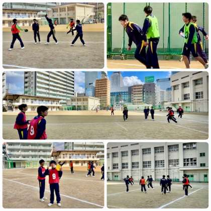 今日は一段と冷え込んでいます。3年男子体育はグラウンドでアルティメットをしています。 アルティメットは、フィールドで、敵・味方に分かれて一枚のディスクをパスしながら運び、エンドゾーンを目指す競技フライングディスクの団体競技です。 寒さに負けず、元気に駆け回っていました。