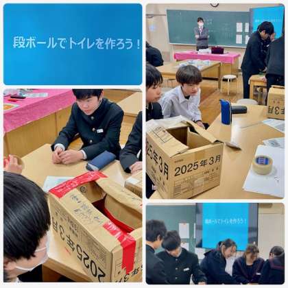 昨年は元日から能登半島地震や8月の日向灘地震で、南海トラフ地震の不安が高まりました。講座では、北区の防災状況を学び、最後には段ボールでトイレを作る実習を行いました。段ボールトイレは大淀中学校防災倉庫で保管されるそうです。