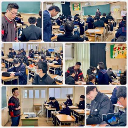 大寒波も一定峠を越えたようですが、まだまだ寒さが厳しいです。7日(金)の6時間目に各学級で私立高校入試事前指導を行いました。持ち物・家を出る時刻・交通経路など最終確認をしました。入試が行われますが、日頃の生活リズムを守って平常通り過ごすことが大切です。