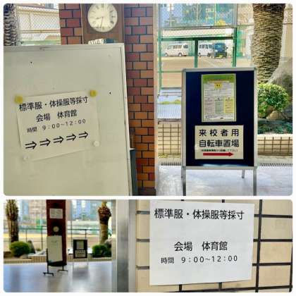 新入生保護者の皆様、本日9時から12時まで本校体育館で「制服・体操服の採寸」を行います。