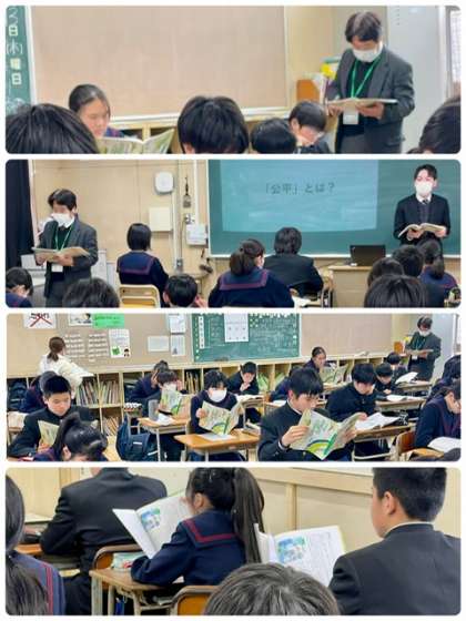 6時間目、1年4組で山下先生が道徳の研究授業を行いました。