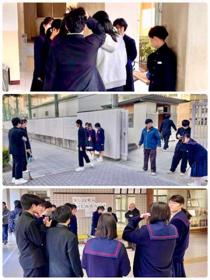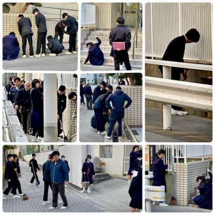 おはようございます。毎週金曜日は早朝清掃です。今日は比較的寒さもひと段落です。担当の生徒の皆さんは献身的に早朝清掃に取り組んでくれています。ありがとう。