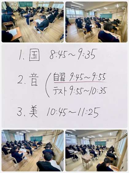 1・2年生は学年末テスト3日目を終えました。しっかり力を出しきれましたか?よくがんばりました
