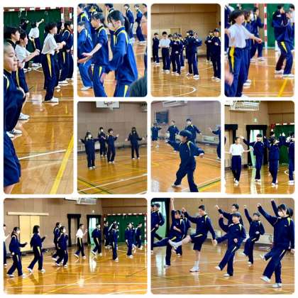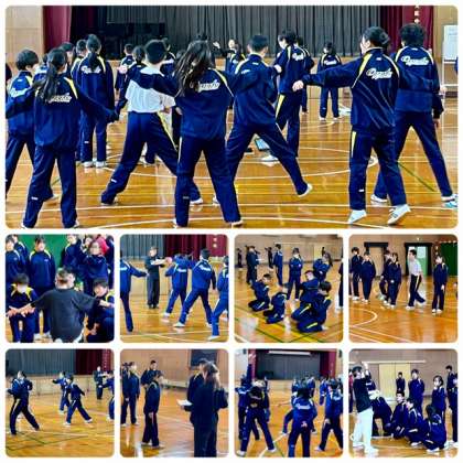 前回までの4時間のご指導をもとに、生徒たちが創作したダンスの、今日は仕上げです。実に楽しい時間です。