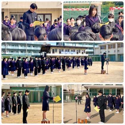 本日(3/7・金)午前8時25分よりグラウンドで、生徒会主催 令和6年度3年生を送る会 を行いました。
