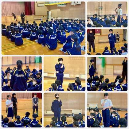 最初はフォークダンスで「オクラホマミキサー」「マイムマイム」、そして出前授業、今日がダンスのまとめです。