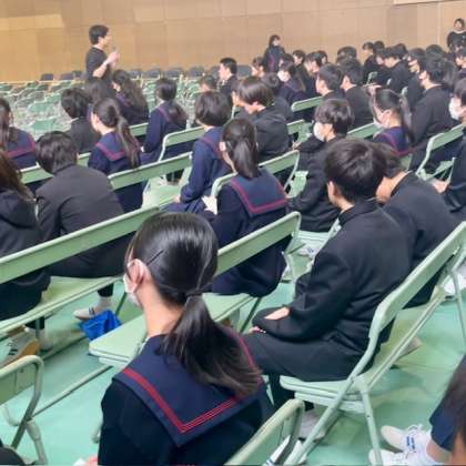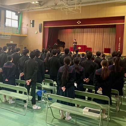 今日は、3年生の公立高校一般選抜入試でした。6時間目の2年生は体育館で卒業式の練習をしていました。