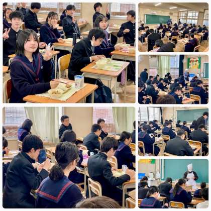 3年生の給食喫食の様子です。いつも通り和気藹々と、中学校生活最後の給食を楽しんでいます。