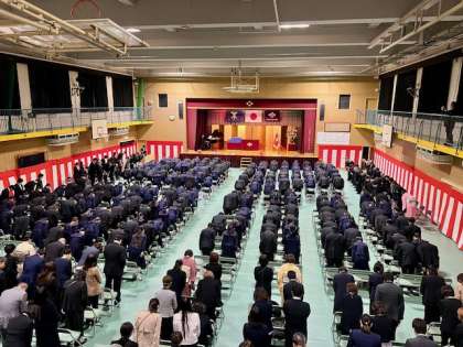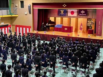 国歌から校歌まで、大淀中学校の生徒は素晴らしい歌声で歌います