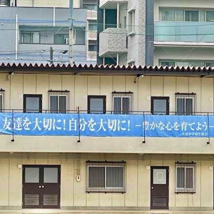 3月末には、生徒会の伝統のひとつ「友達を大切に!自分を大切に!ー豊かな心を育てようー」のスローガンが、PTAのご協力で新調されました。