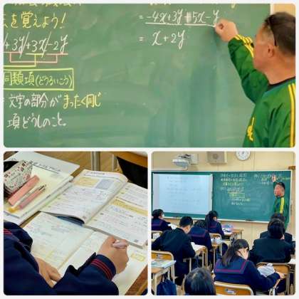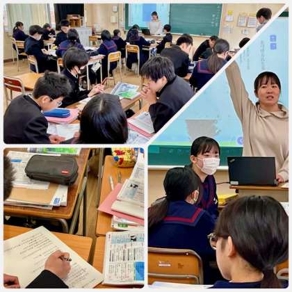 2年3組は数学、2年4組は国語の授業です。とても集中して学習していました。グループ学習も楽しそうでした。