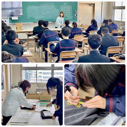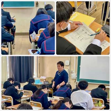 4月14日(月)4時間目、授業の様子です。1年1組は理科、1年2組は美術、1年3組は数学の学習です。数学は教室内習熟度別指導で八田先生も指導に加わっています。