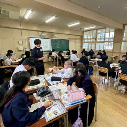 2年1組は技術、家庭です。少人数授業で学習しています。