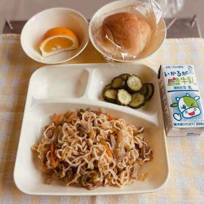 今日は、1年生が一泊移住なので、給食は2・3年生のみです。