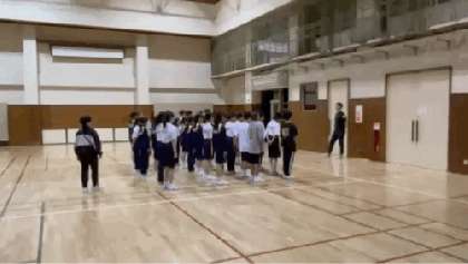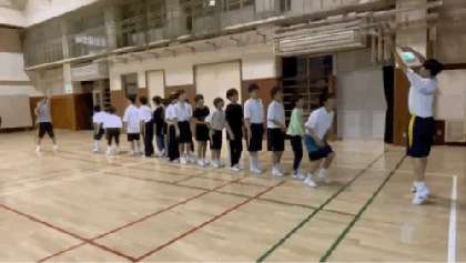 1組は、体育館で集団行動と大縄跳びを行いました。