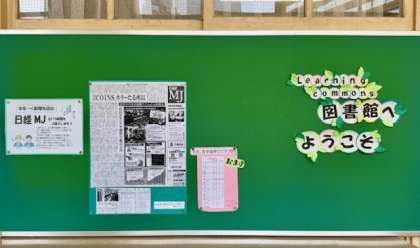 図書館前の掲示板には「図書館にようこそ」と歓迎の言葉が貼られています。また、山本先生は新聞を読むことに興味を持って欲しいですと話しておられました。やる〜く新聞を読むポイントも紹介されています。生徒の皆さんは図書館前の掲示板を見に来てください。