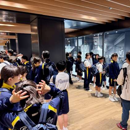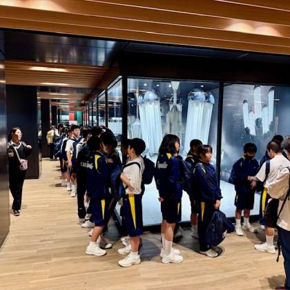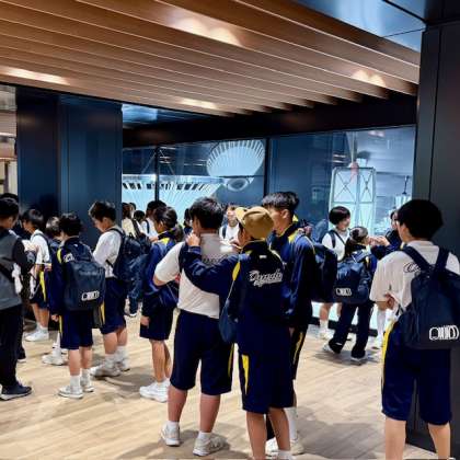 1年生は、地下鉄森ノ宮駅構内で団体専用列車の乗車待ちです。待ち合いには往年の地下鉄ホームを彩ったシャンデリアが展示されています。