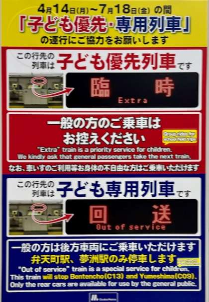 1年生は、森ノ宮駅からこども専用列車に乗車しました。