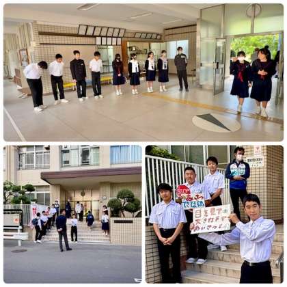 正門周辺では生徒会役員の皆さんが、玄関内では風紀委員会の皆さんがあいさつ運動をしてくれています。ありがとうございます。