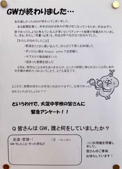 図書館前の掲示板に、アンケートのお願いが掲示されています。