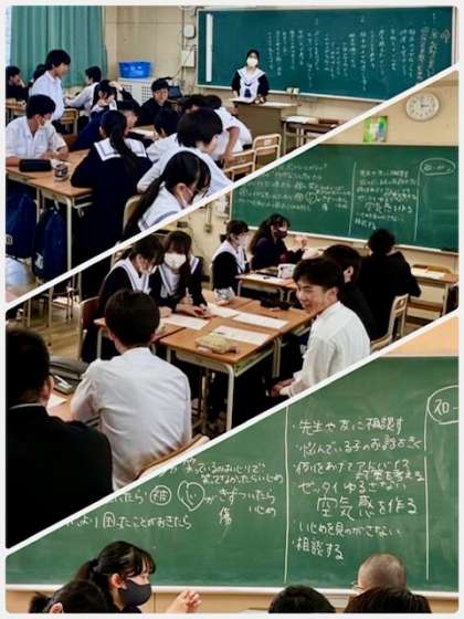どの学年・クラスも熱心に話し合いがなされました。いじめ(いのち)について考える日だけで終わることが無いよう。常に相手の立場に立って、行動して欲しいです。いじめはどこの学校でも起こりうるものです。しかし、いじめは生命を脅かす行為で、人間として絶対に許されない行為だと意識してください。
