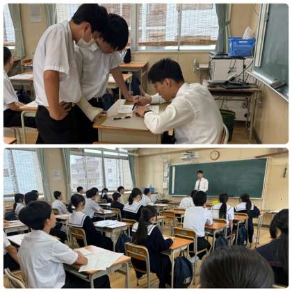 2組は英語です。なんと90点オーバーが4人いたとのこと、頑張りました。この生徒たちは暗唱テスト等が免除されます。さらに英語力を伸ばす時間に使って欲しいと話されていました。長文読解に取り組みましょう。