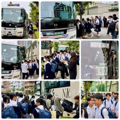 予定より少し遅れましたが3年生を乗せたバスが学校を出発しました。PTA会長南様はじめ役員の皆様、保護者の皆様、教職員の皆さん、お見送りありがとうございました。