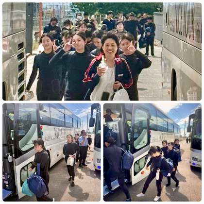 ウェットスーツ更衣して、男女別にバスに乗り込みました。スタートポイントに向かいます。