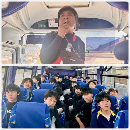 バスの中では、ガイドさんから安全についての話を聞きました。楽しみです。