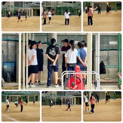 土曜日部活動の様子です。大阪市秋季総合体育大会が大阪市内各地で行われています。グラウンドではハンドボール部女子、体育館では女子バレーボール部が練習していました。