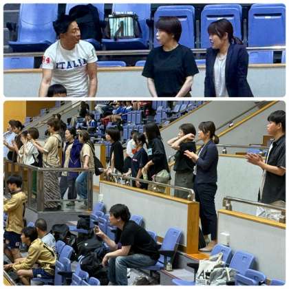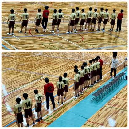 会場の住吉スポーツセンターには、男・女ベスト4が集まって最終リーグ戦に臨みました。最終戦の対戦相手は阪南中学校です。2勝1敗で勝ち上がり、この最終戦を勝つか引分けすることで大阪市優勝を勝ち取れます。住吉スポーツセンターには、たくさんの保護者の皆さん、卒業生だけでなく3年学年主任の三浦先生、昨年までお世話になった福島先生、校長先生も応援に駆けつけてくださいました。