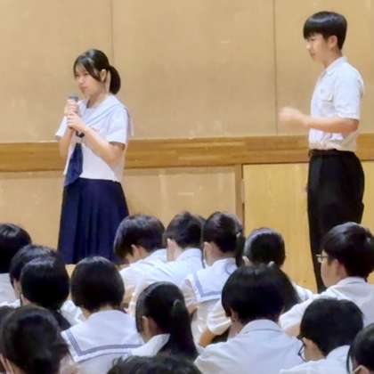 水曜日の朝は、3年生が学年集会です。最初に進路指導主事の沖先生から、進路説明会についてお話しがありました。全学年保護者対象です。会場ならびに配付資料準備の都合があるので、期日までに出欠を知らせてください。