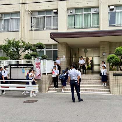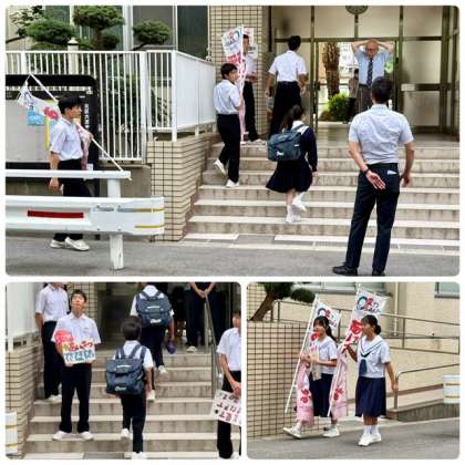 玄関前では、生徒会役員の皆さんが「あいさつ運動」をしてくれています。これから、さらに暑い日が続きますが、大淀中学校生があいさつがしっかりと身につけることができるようお願いします。