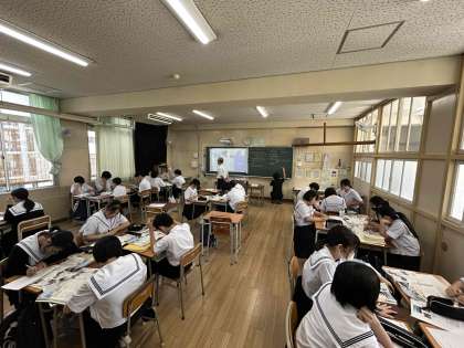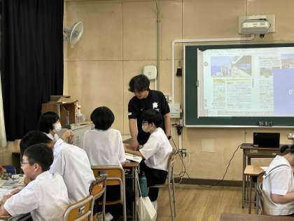 3時間目、2年4組で社会科 三谷 拓大先生が研究授業を行いました。単元は、中国・四国地方の交通網の変化が人々の生活に与えた影響を知るという内容です。