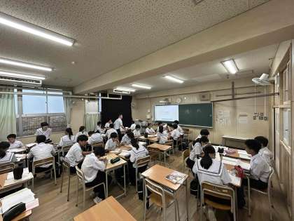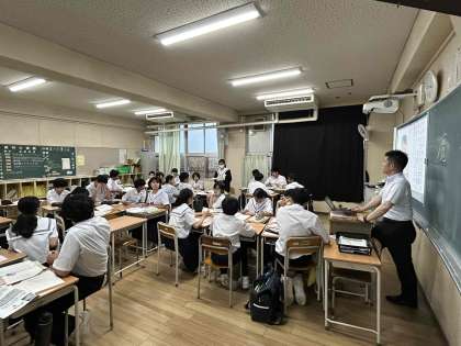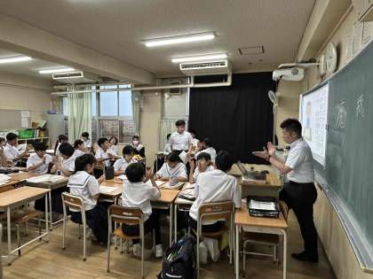 1時間目、1年3組の教室で、国語科 長野 一樹先生が研究授業を行いました。単元は「空中ブランコ乗りのキキ」の学習でした。