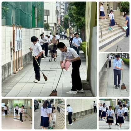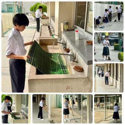 今朝の早朝清掃の様子です。毎週金曜日の朝は、生徒が分担して学校内外の清掃活動をしてくれています。いつも、ありがとうございます。