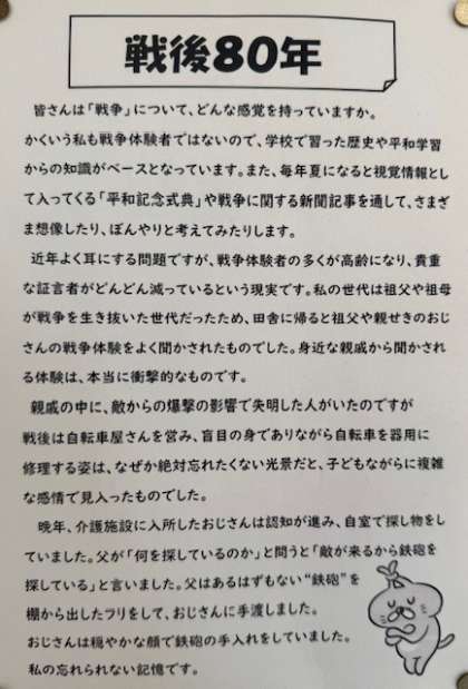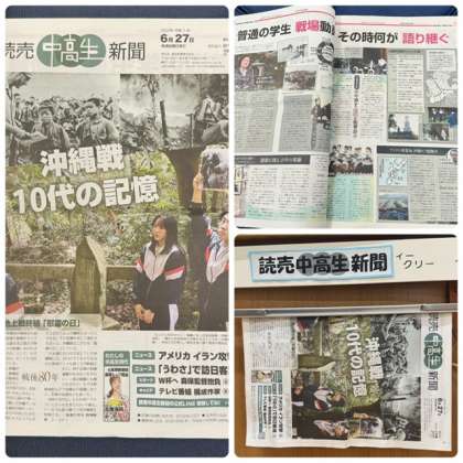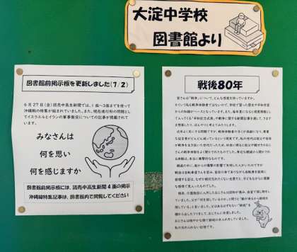 今年は戦後80年、図書館の掲示板につられて、読売中学生新聞を読みに来ました。