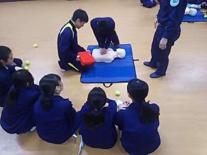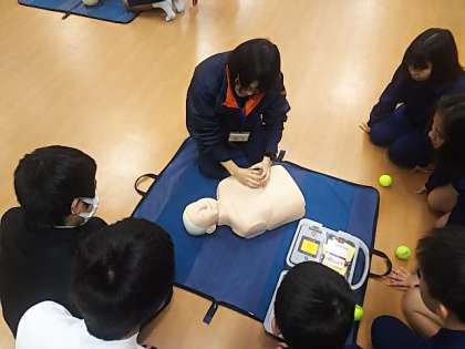 心肺蘇生とAEDの使い方を通して、命の大切さについて学びました。
